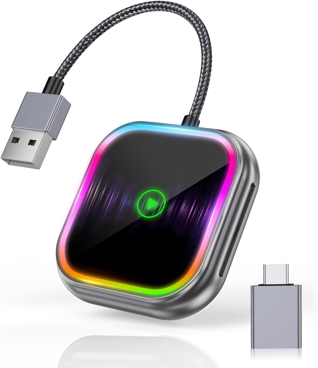 Wireless CarPlay Adapter 2-in-1 for iPhone & Android Auto, Plug & Play with Auto Connect, Dual-Band WiFi & Bluetooth, Compatible with 800+ Car Models (2016+), iPhone iOS 10+ & Android Devices